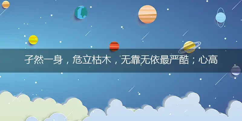 孑然一身,危立枯木,无靠无依最严酷;心高气傲,注定孤独,自作自受成定局在十二生肖中代表生肖羊、兔、鼠、马、虎、鸡。这几个生肖动物。
